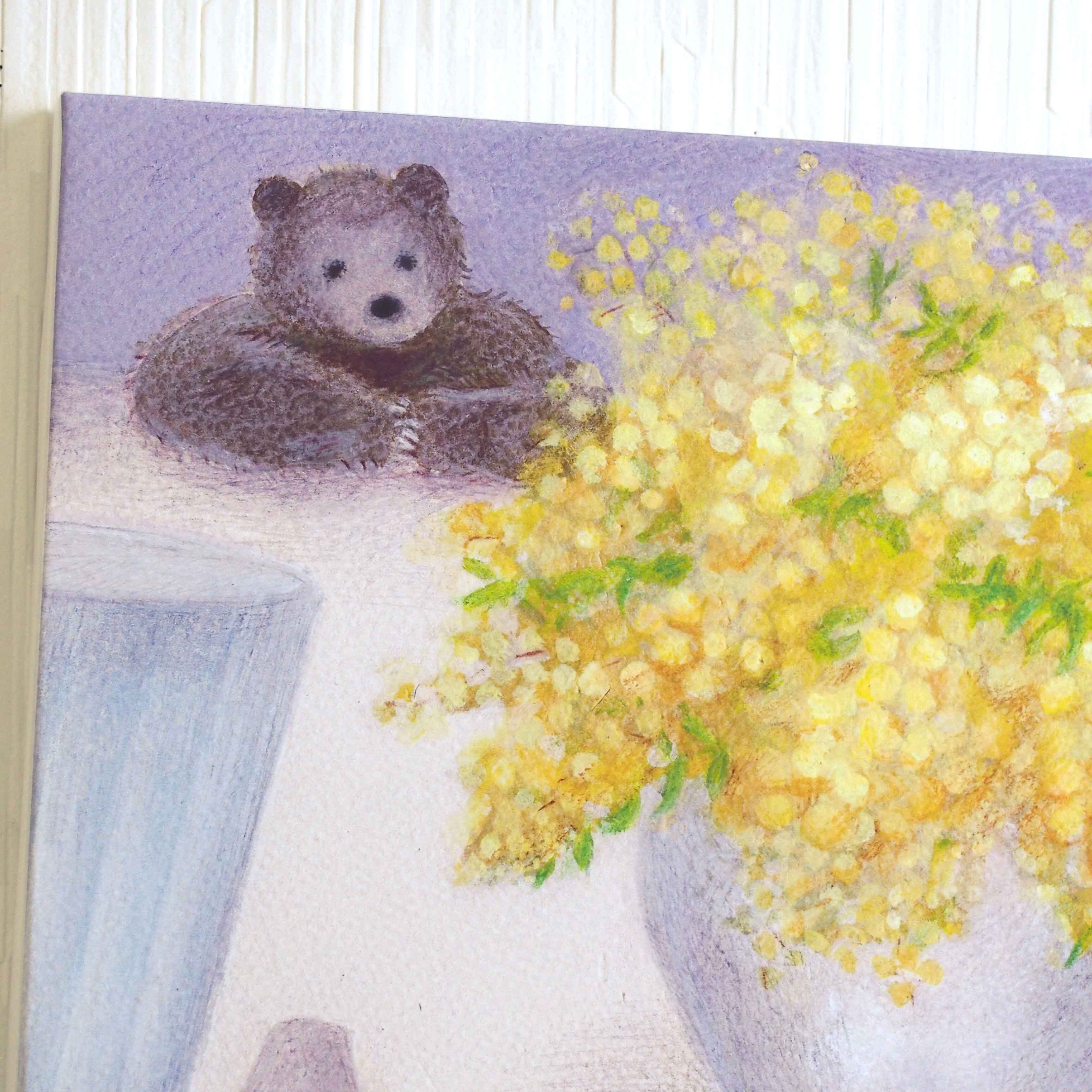 *「 くまとミモザ 」 (複製) 木製パネル サイズ変更可