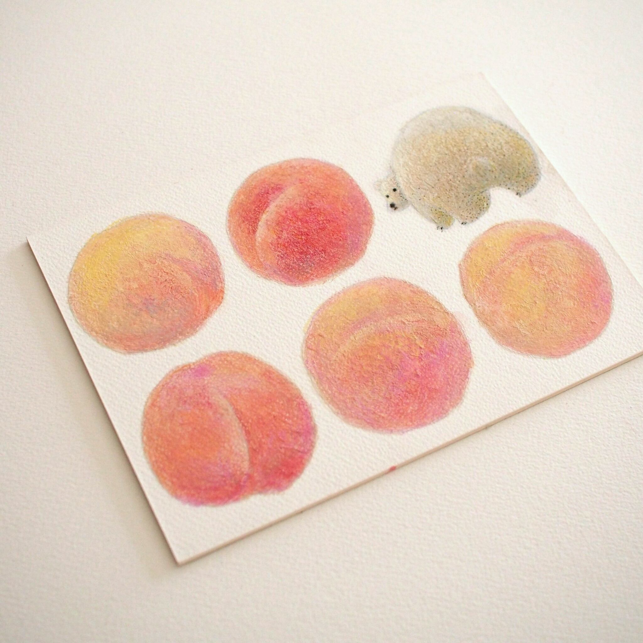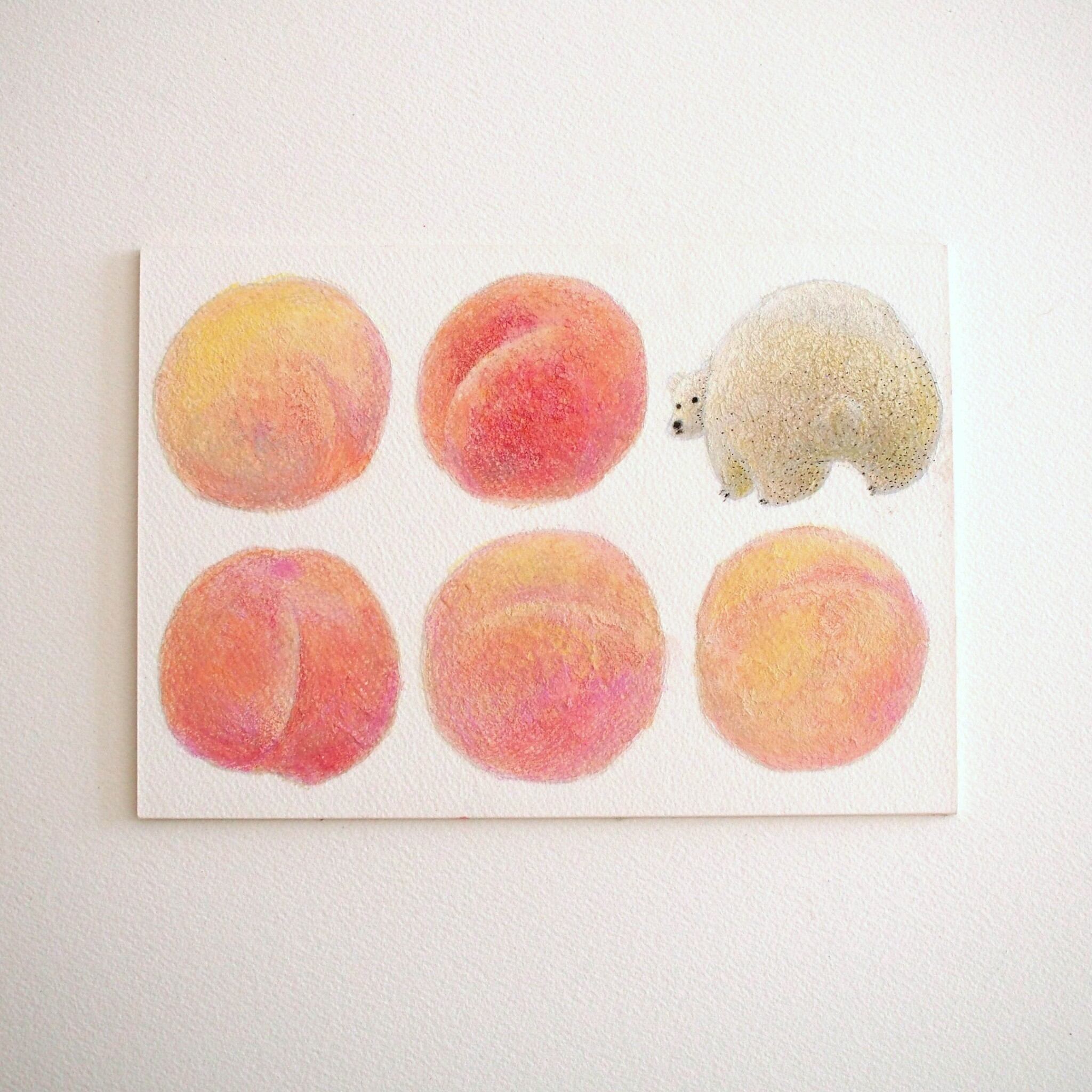 桃とならんだくまの絵を描きました。