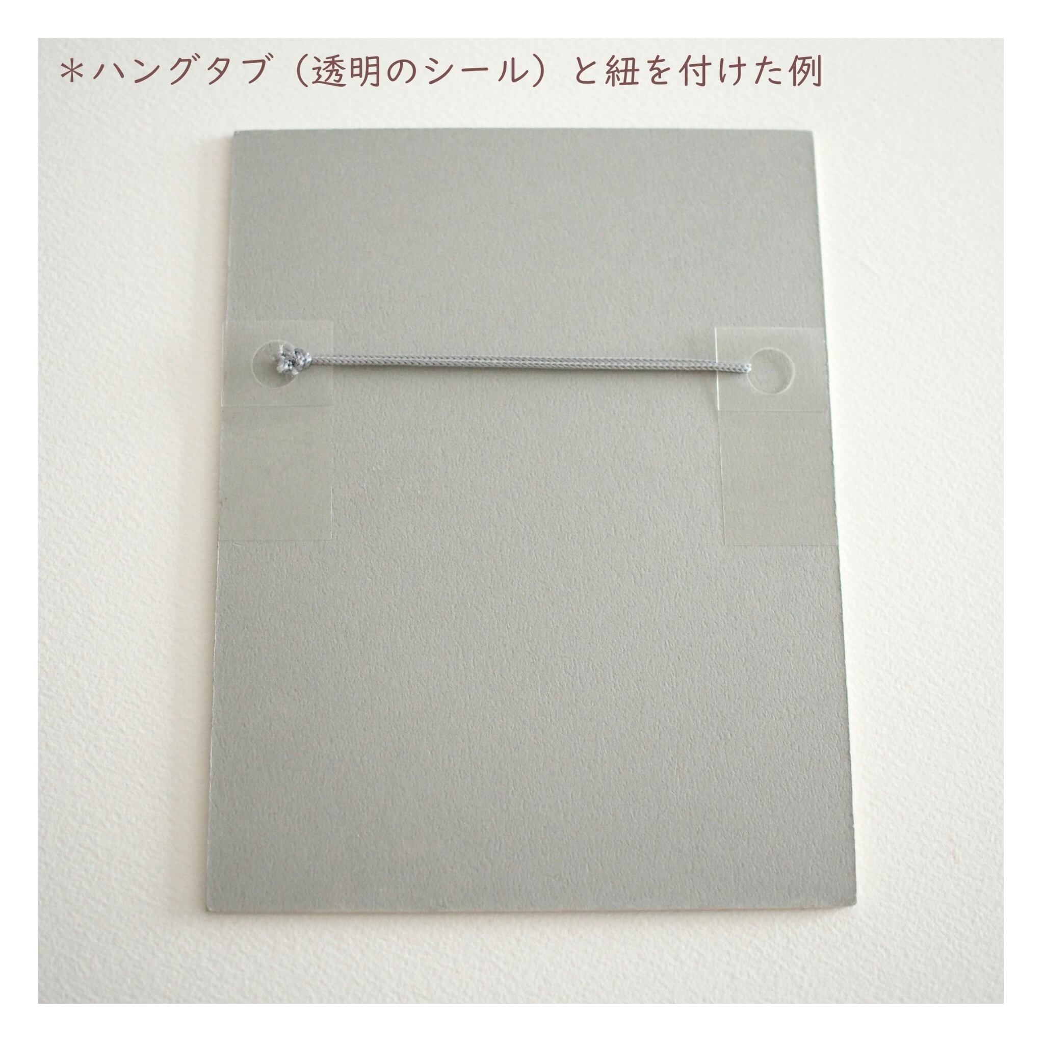 また最後に掲載の写真のように、裏にハングタブと言うシールを貼り紐を通せば
