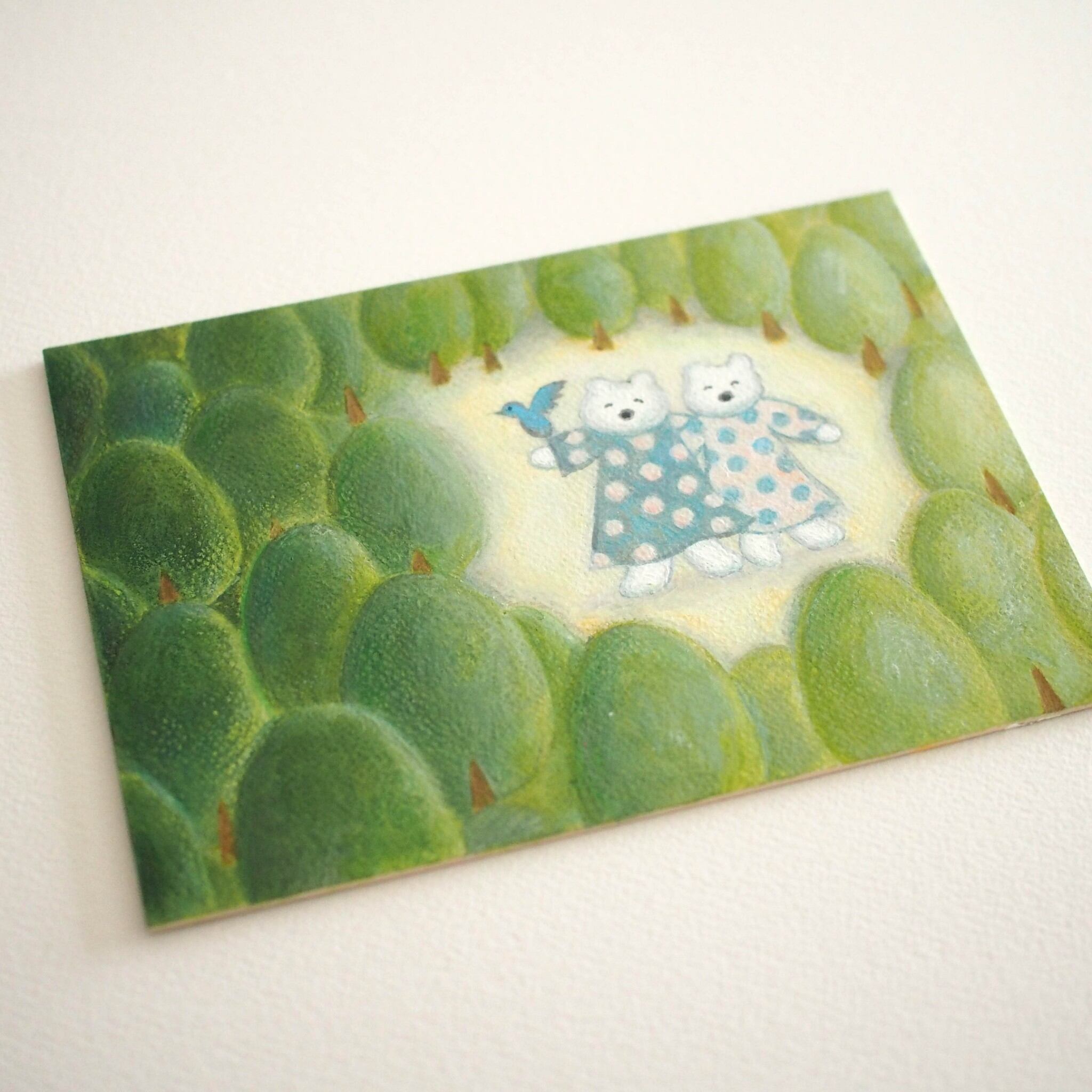 森の中で待ち合わせをしているしろくまたちの絵を描きました。
