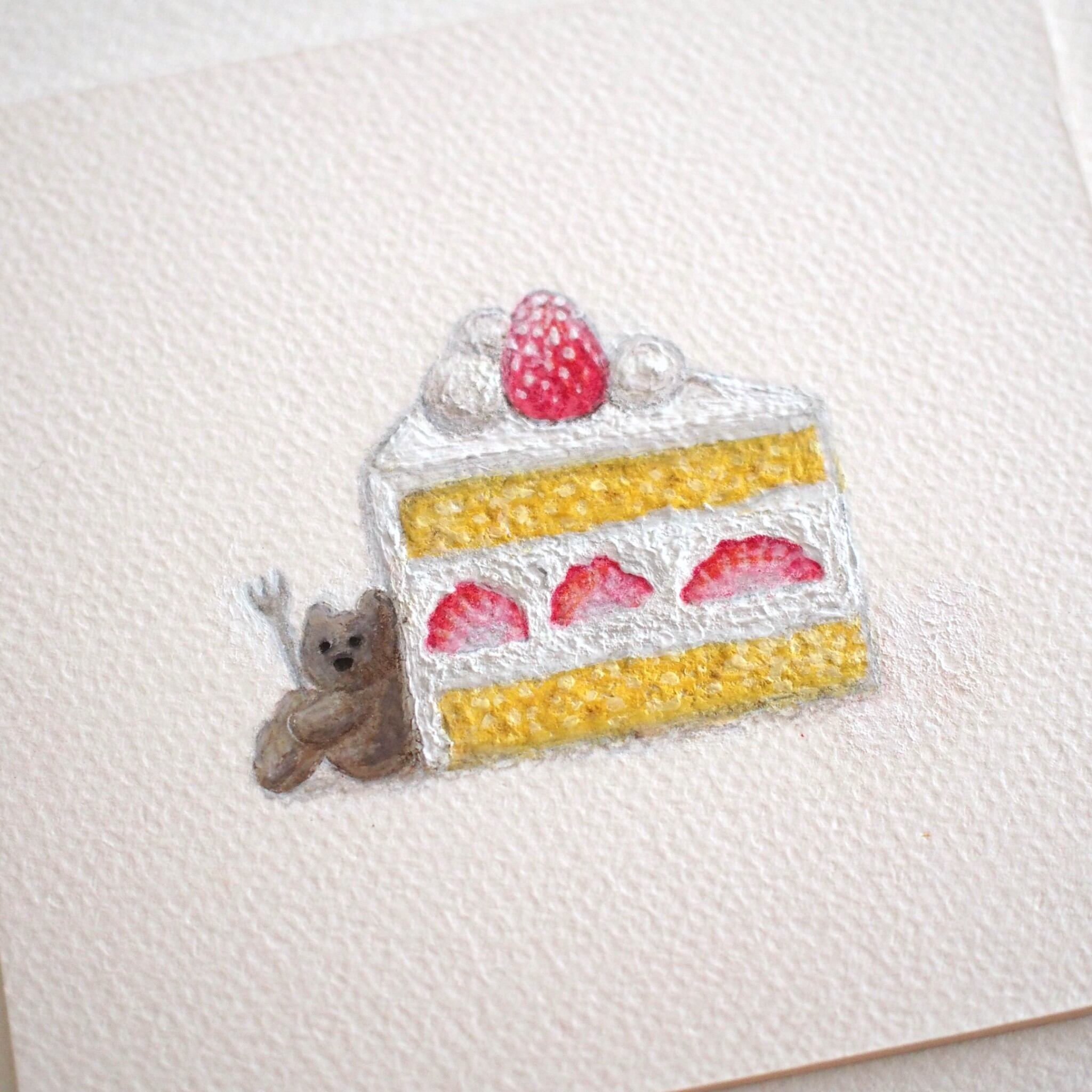 ショートケーキとくまの絵を描きました。
